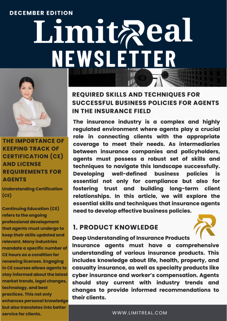REQUIRED SKILLS AND TECHNIQUES FOR SUCCESSFUL BUSINESS POLICIES FOR AGENTS IN THE INSURANCE FIELD